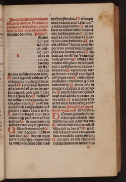 На самом деле, это не совсем манускрипт, но инкунабула - одна из первопечатных книг. Делая первые шаги, печатники подражали рукописям, тем более, что аудитория к ним привыкла. Но за счет печати шрифт очень аккуратен и разборчив, поэтому с него удобно начинать знакомство. Если несколько раз прочесть псалом, глаз привыкает распознавать значки и будет готов к более суровым испытаниям.